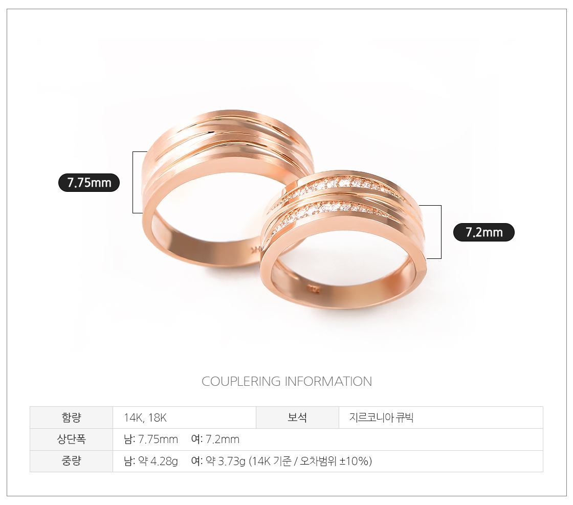 · 로즈 골드 색상의 경우 금속 배합 과정이 수작업으로 이루어지기 때문에 미세한 톤의 차이가 있을 수 있습니다.
