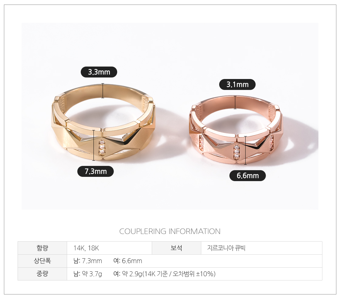 · 로즈 골드 색상의 경우 금속 배합 과정이 수작업으로 이루어지기 때문에 미세한 톤의 차이가 있을 수 있습니다.
