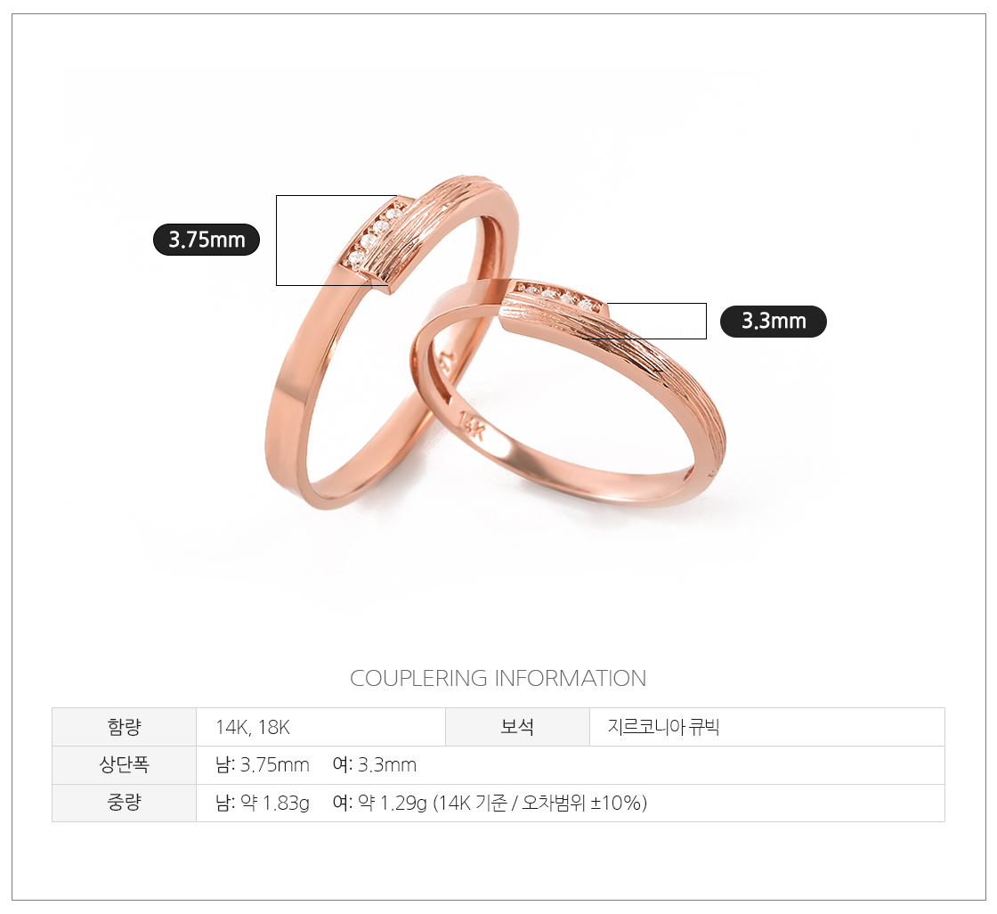 · 로즈 골드 색상의 경우 금속 배합 과정이 수작업으로 이루어지기 때문에 미세한 톤의 차이가 있을 수 있습니다.