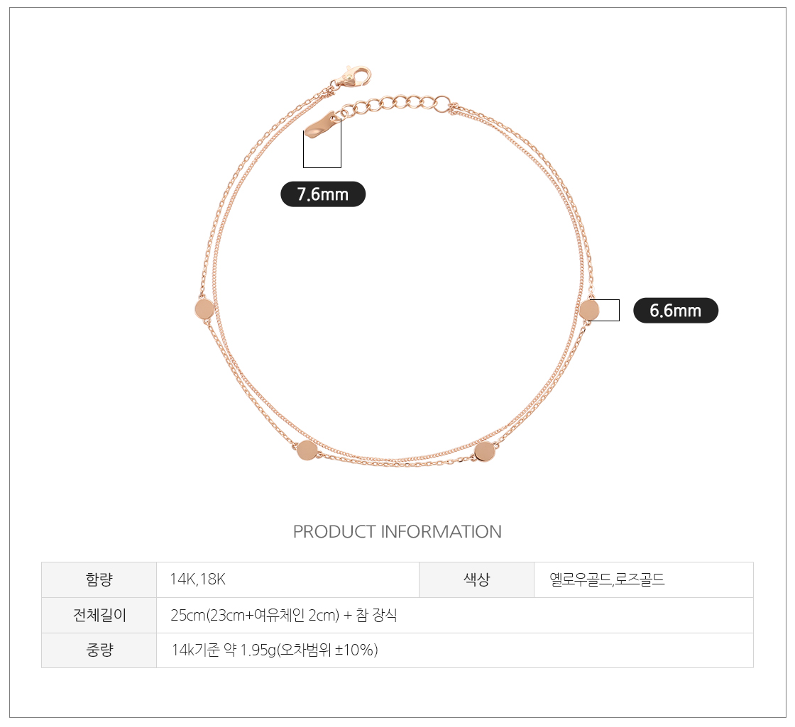 · 로즈 골드 색상의 경우 금속 배합 과정이 수작업으로 이루어지기 때문에 미세한 톤의 차이가 있을 수 있습니다.