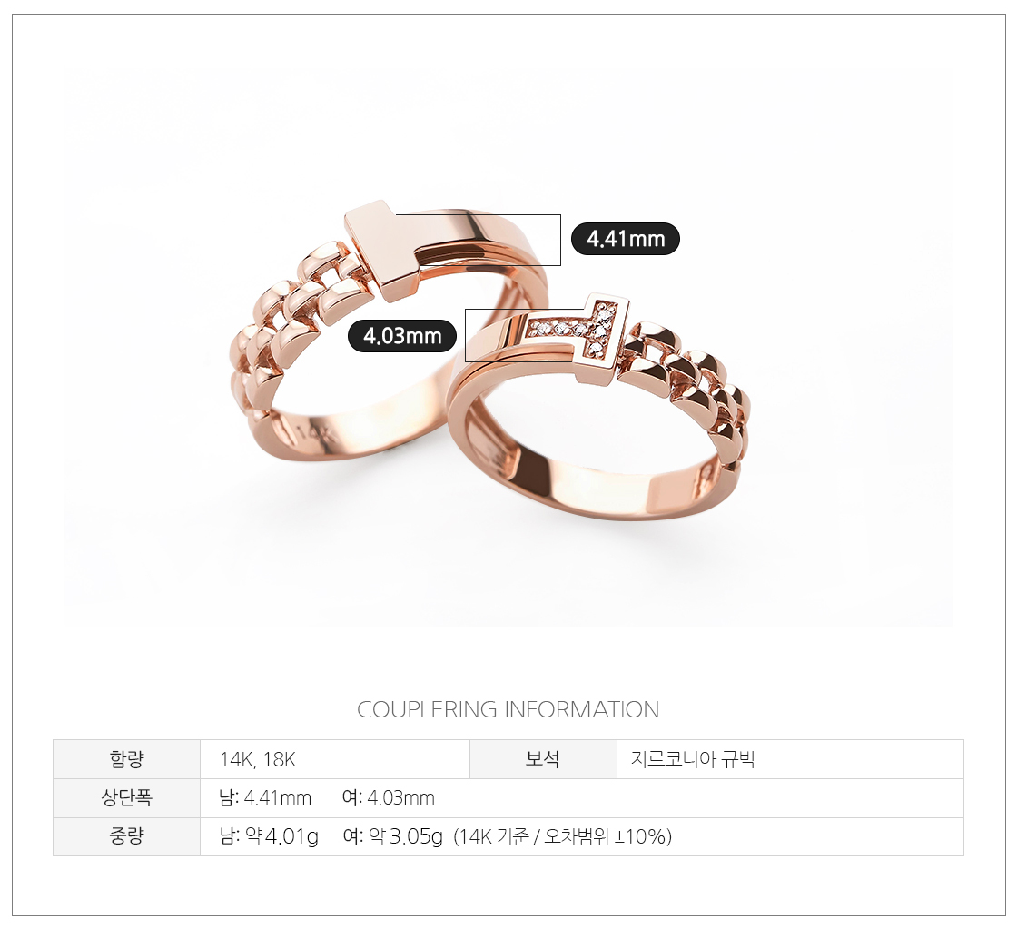 · 로즈 골드 색상의 경우 금속 배합 과정이 수작업으로 이루어지기 때문에 미세한 톤의 차이가 있을 수 있습니다.