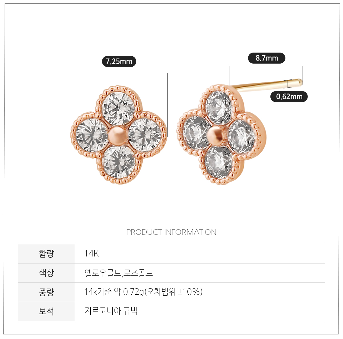 · 로즈 골드 색상의 경우 금속 배합 과정이 수작업으로 이루어지기 때문에 미세한 톤의 차이가 있을 수 있습니다.