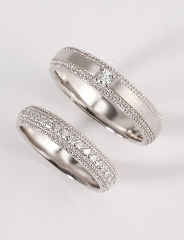 트윈클링 루덴트 안쪽막음 커플링 양쪽 밀그레인으로 고급스러운 디테일 남자 메인스톤 여자 파베세팅 클래식 데일리 웨딩밴드 추천