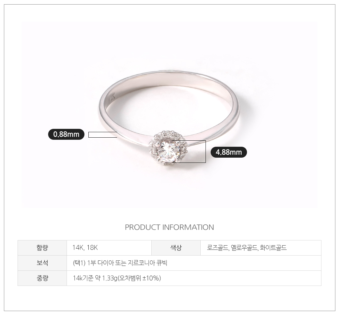 · 로즈 골드 색상의 경우 금속 배합 과정이 수작업으로 이루어지기 때문에 미세한 톤의 차이가 있을 수 있습니다.