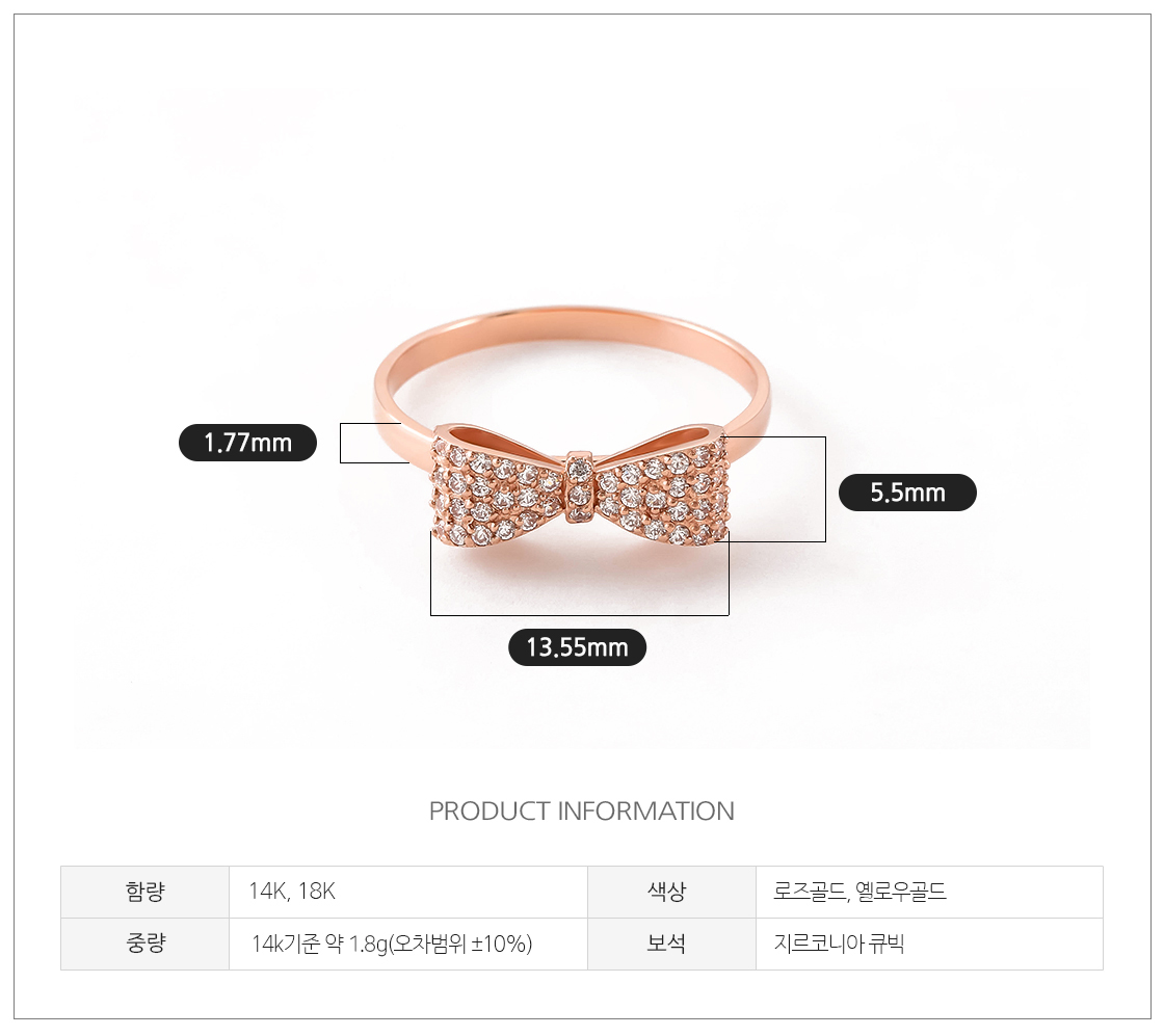 · 로즈 골드 색상의 경우 금속 배합 과정이 수작업으로 이루어지기 때문에 미세한 톤의 차이가 있을 수 있습니다.