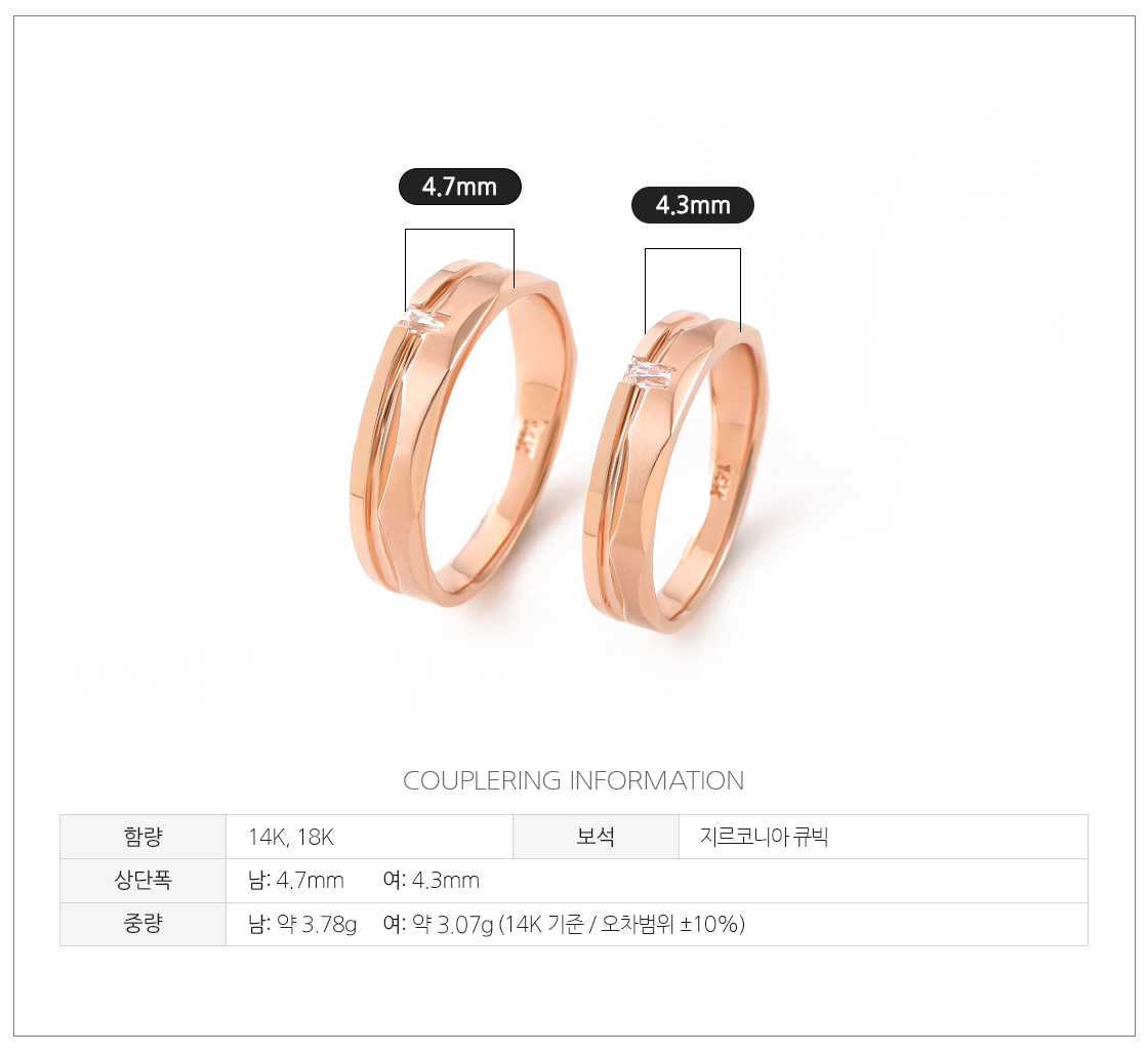· 로즈 골드 색상의 경우 금속 배합 과정이 수작업으로 이루어지기 때문에 미세한 톤의 차이가 있을 수 있습니다.