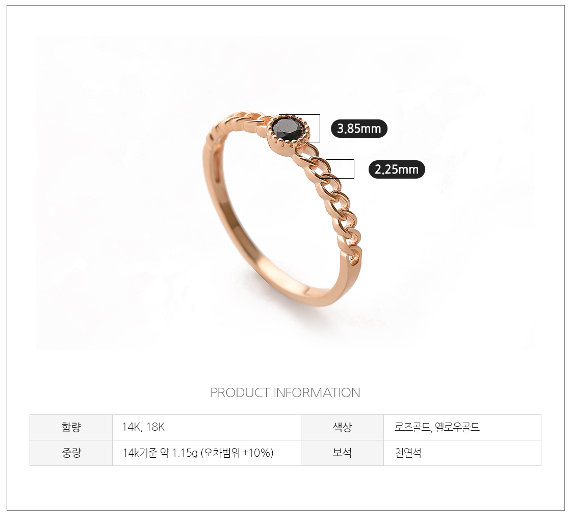 · 로즈 골드 색상의 경우 금속 배합 과정이 수작업으로 이루어지기 때문에 미세한 톤의 차이가 있을 수 있습니다.