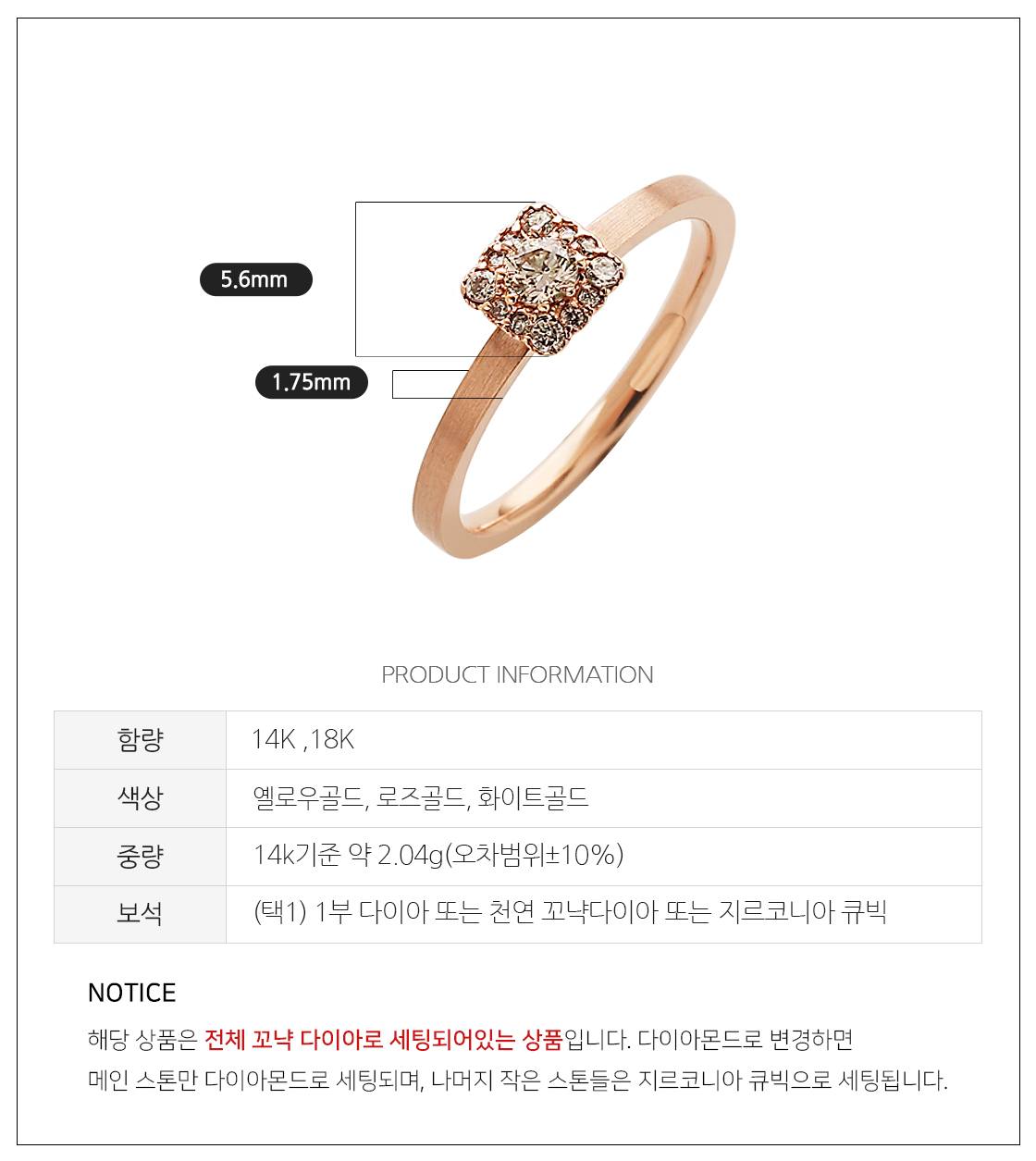 · 로즈 골드 색상의 경우 금속 배합 과정이 수작업으로 이루어지기 때문에 미세한 톤의 차이가 있을 수 있습니다.