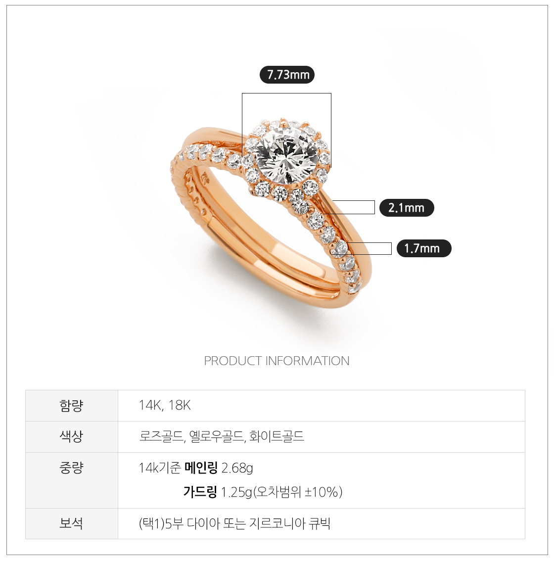 · 로즈 골드 색상의 경우 금속 배합 과정이 수작업으로 이루어지기 때문에 미세한 톤의 차이가 있을 수 있습니다.